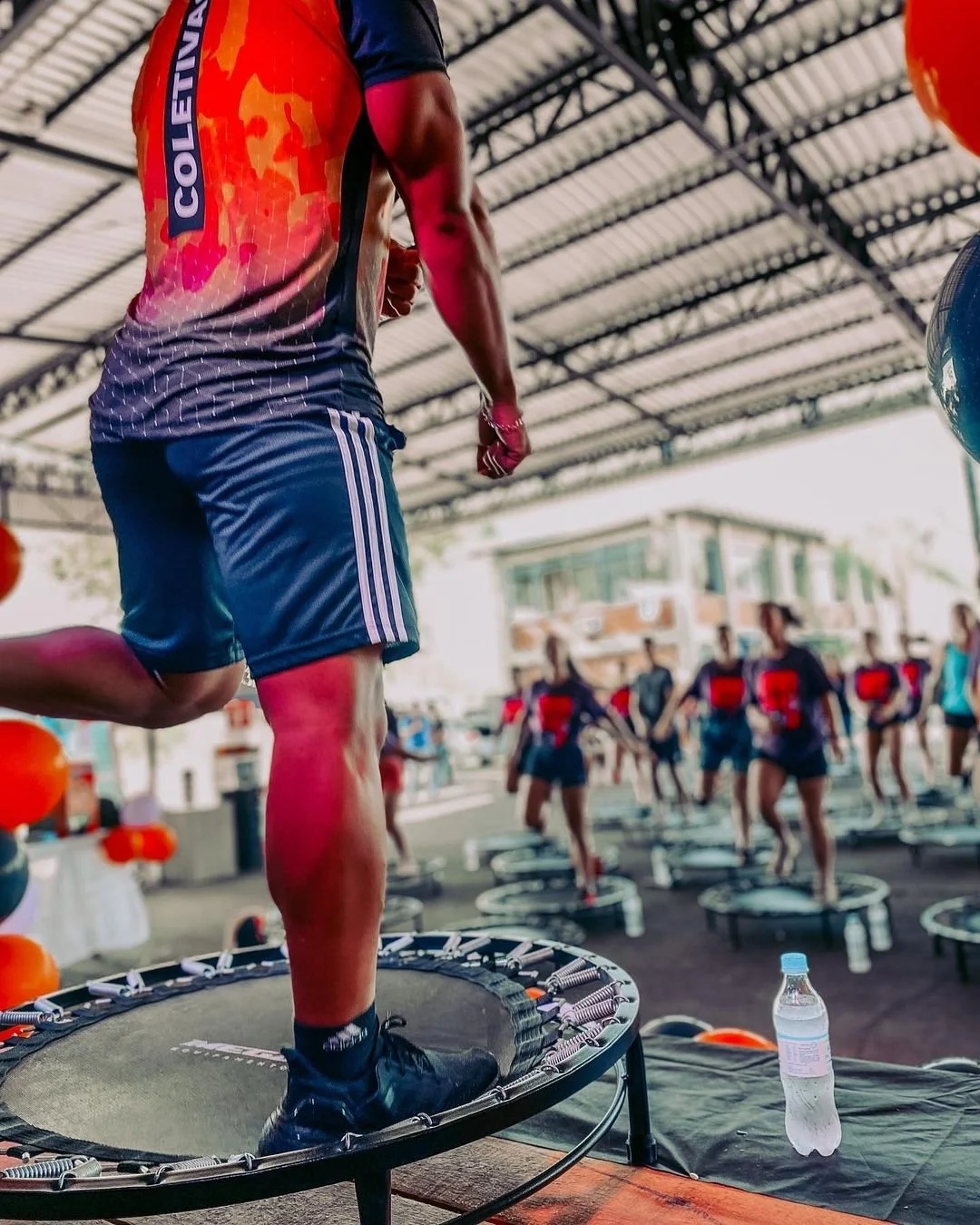 Join our fun, music-filled trampoline workouts that combine cardio, strength, and mobility training — all in one energising session.